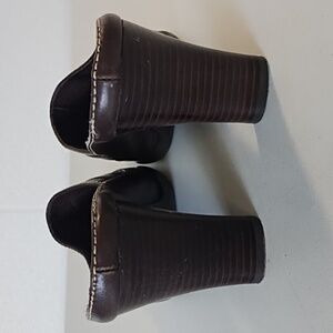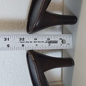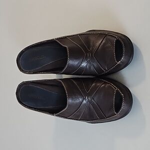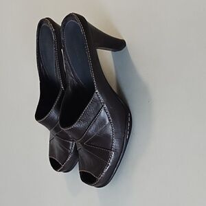 Aerosoles Brown 8 Peep Toe Boho Top Stitch Leather Slip-on Heel Rubber Sole