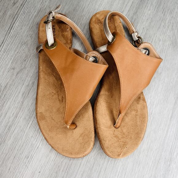 The Aerosoles Brown Flat Thong Toe Sandals are a stylish and comfortable choice for women looking for a versatile footwear option. Made of leather, these sandals feature a flat heel and a thong toe design, making them perfect for everyday wear. The brown color adds a classic touch to any outfit, while the Aerosoles brand ensures quality and durability. With a US shoe size of 9, these sandals are a great fit for a variety of shoe sizes.