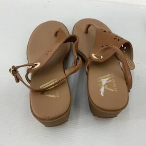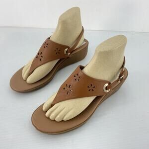 Aerosoles Brown Leather Floral Wedge Slingback Thong Sandals Womens 8.5 Preowned