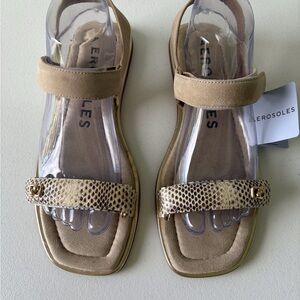 Aerosoles Bruno Snake Print Leather Flat Sandals Size 8.5 Beach Summer Cruise