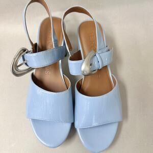 Aerosoles Chamber Buckle Platform Dusty Blue Patent Leather Size 9.5 Block Heel