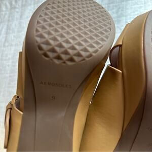 Aerosoles Collin Platform Sandals 9 Doe Tan Leather Gold Buckle NEW NWT