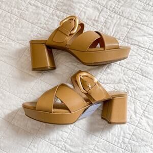 With a chunky platform, cross-banded look, and overstated buckle detail, this pair is great to elevate any outfit. Size 9. Box not included but tag still attached. Smoke free home!