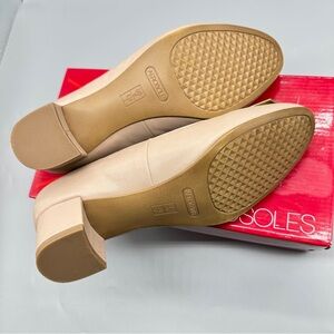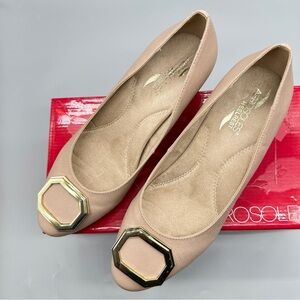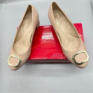 Brand new in box Aerosoles “Compadre” pumps in a neutral nude shade. Features a gold-tone octagonal toe accent and cushioned insoles for all-day comfort. A stylish and professional look with a modest block heel.