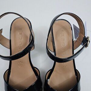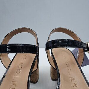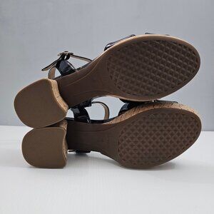 Aerosoles Cosmos Platform Sandal Womens 8 Black Patent Cork Chunky Heel NEW