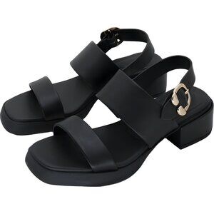 Aerosoles Dove Block Heel Sandals Black Adjustable Strap Women's US 9M