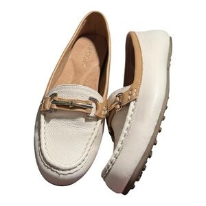 Aerosoles Drive Along Horsebit Leather Driving Loafers Ivory Beige Size 9.5
