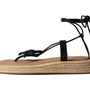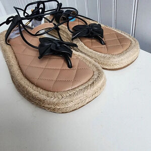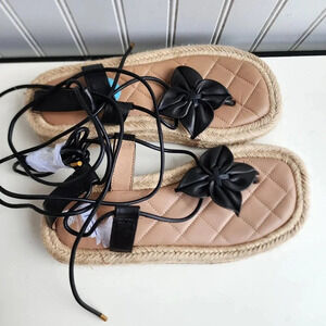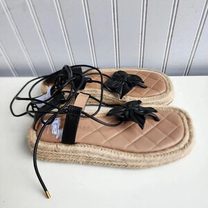 Aerosoles Fanie Lace Up Black Leather Flower Espadrilles Sandals Size 6.5 Black