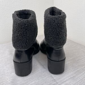 Aerosoles Faux Fur Cuff Black Chunky Ankle Boots Womens 9.5M Winter Warm Comfort