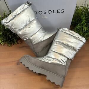 Aerosoles Girls Shadie Snow Boots Silver Metallic Size 1