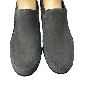Aerosoles Gray Suede Black Accent Slip on Mid Wedge Bootie Womens Size 7 M