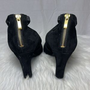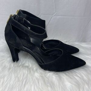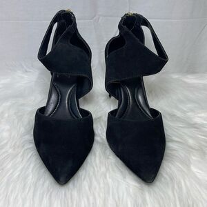 Heel height is 3.5".In very good pre-owned condition. Normal wear and tear noted, there is a tiny tear in the inside bottom of the right shoe from removing the price tag. Please review pictures and feel free to ask any questions or for more pictures prior to purchasing.