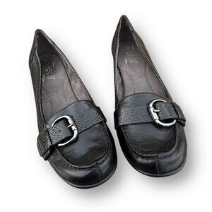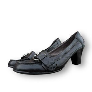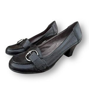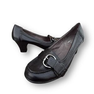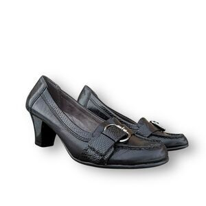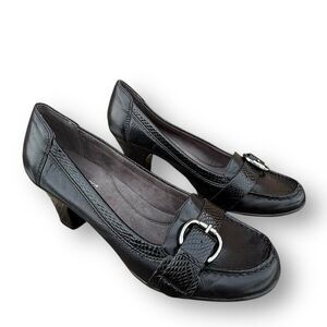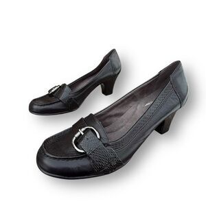 Aerosoles Heelrest Black Leather Moccasins Heeled Loafers Shoes Women's size 9.5