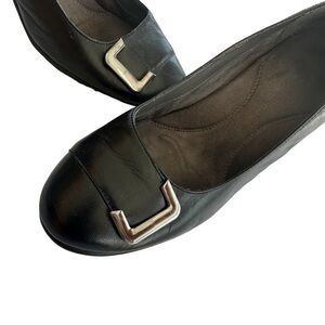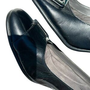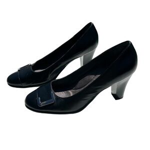 Aerosoles Heelrest "Colorado" Black Leather Pump, Silver Buckle, 9.5