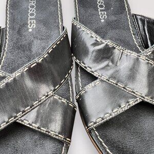 Aerosoles Leather Sandals Black Open Toe Slip On Size 6.5