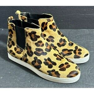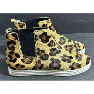 Aerosoles Leopard Print Sneaker Bootie Gold, Black, and Brown Women's Sz 8.5