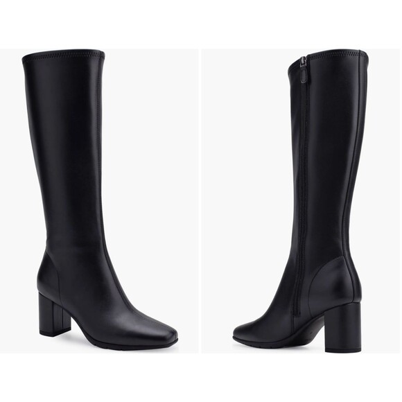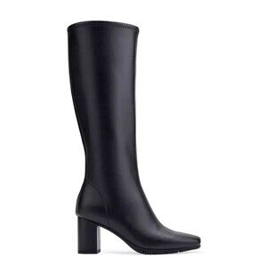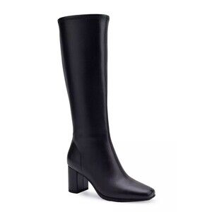 Sleek, sophisticated style you'll look effortlessly polished in the Micah knee boot, finished with a covered heel. Equally chic with a pencil skirt or skinny jeans. Designed in breathable faux leather and all synthetic materials.