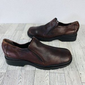 Aerosoles Mule Loafer Size 10 Brown Leather Retro Slip On Shoe Square Toe Chunky