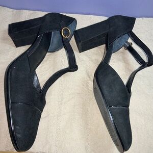 Aerosoles Pied Piper T strap faux suede block heels Sz 9.5