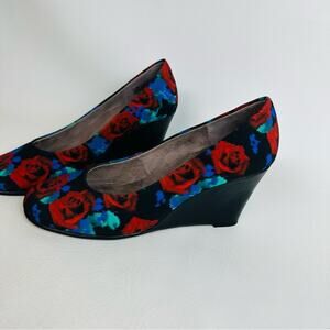 Aerosoles Plum Tree Black Red Purple Floral Wedge 3" Heel Pumps Womens Sz 7.5 M