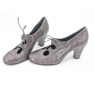 Aerosoles Retro Pin Up Girl Gray Leather Lace Up Tie Bow Pump Heels Size 9.5