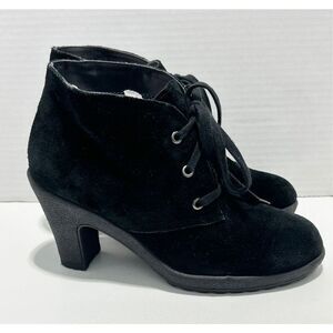 Title: Aerosoles Lace Up Suede Leather Heeled Ankle Boots Black 6