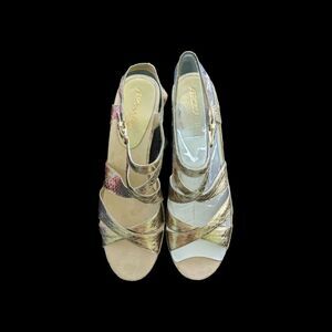 Aerosoles Sandal Women's 11M Bakers Dozen Gold Ankle & Criss Cross Straps Wedge