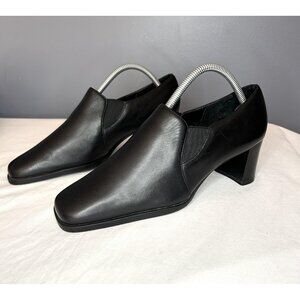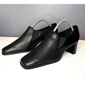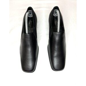Aerosoles Shoes Ankle Boots Booties Womens 9.5 Black Slip On Block Heel Leather