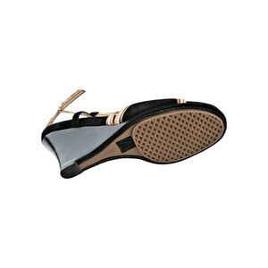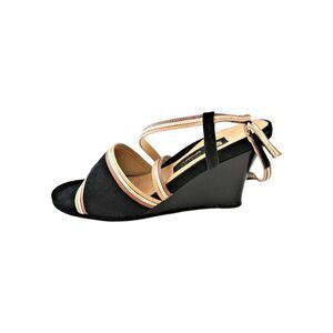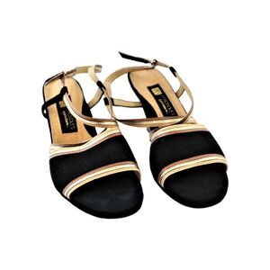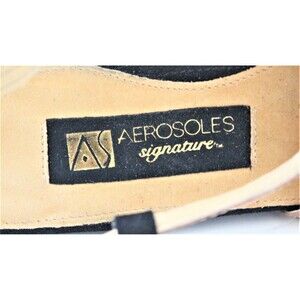 Aerosoles Signature Sandals Wedge Black Suede W Gold Cross Strap Size 9