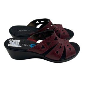 Aerosoles Size 10 Leather Slip-On Wedge Casual Comfortable Sandals Red