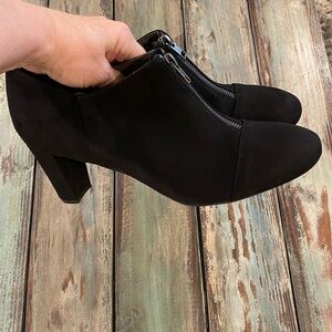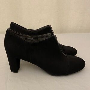 Aerosoles Size 11 Women's Madison Ave Block Heel Booties, Ankle Boots, Comfort Shoes, Black Faux Suede, Zip. Preowned. Nice condition.
