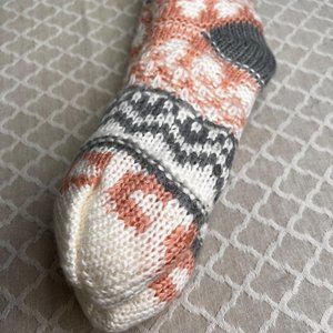 Aerosoles Slipper Socks Tall Pink Gray Faux Sherpa Pom Nordic Fair Isle NWT