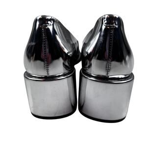 Aerosoles Soft Square Toe Silver Mirror Metallic Block Heel Shoes Women's 6.5