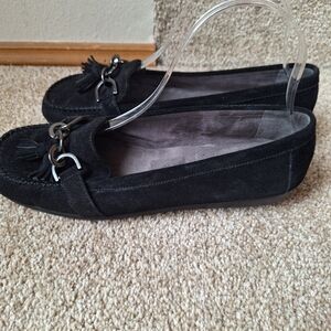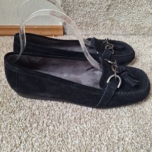 Aerosoles StitchNTurn Womens Black Suede Slip On Tassel Chain Flats Size 10M