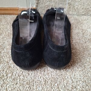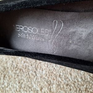 Aerosoles StitchNTurn loafer/flats. Soft black suede. Slip on. Rounded toe. Tassels with chain detailing. Worn once. Under to Tongue area where the size label is, there is some peeling, shown in pic. Womens size 10M