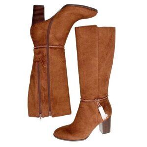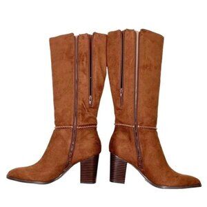 Aerosoles Stonewall Faux Suede Brown Heeled Boots Size 8.5 Memory Foam NIB