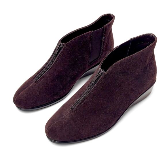 Aerosoles Suede Wedge Booties Brown Women’s 7.5 Quiet Luxury Minimalist