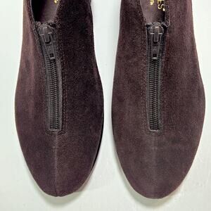 These Aerosoles women’s booties in size 7.5 bring a quiet luxury feel with their soft suede upper, clean minimalist profile, and subtle comfort wedge that adds height without sacrificing ease. The slip-on stretch panels keep the fit streamlined while making them an effortless everyday choice, and the rich brown tone pairs naturally with cool or warm palettes for fall and winter outfits.