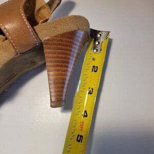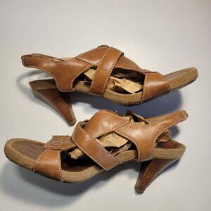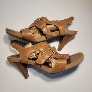 Aerosoles Tan Slingback Sandal With Buckle 3.5" Heel Open Toe Size 9