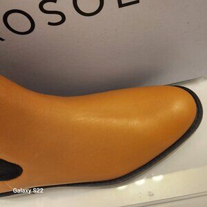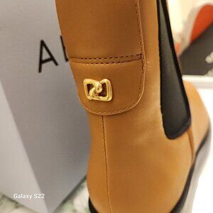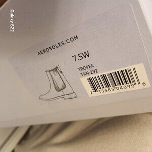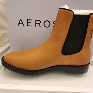 Aerosoles " Tropea" Tan/Black Booties. NIB. Size 7.5 Wide. NIB/Original box/packaging. Both boots and box are perfect. No imperfection/peeling/tears/stains. Smoke free home. No odors. All offers are welcome. Retail: 150, on several sites for 105. Thank you!