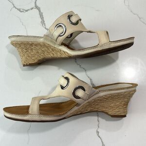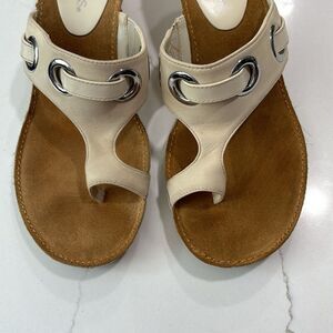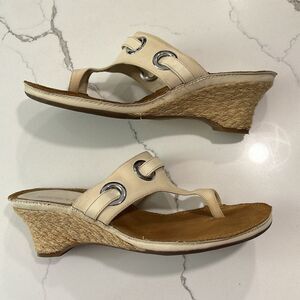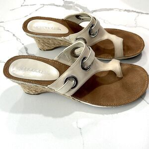 Aerosoles | Vintage T-Strap Cream Wedge Leather Thong Sandals