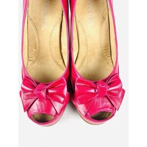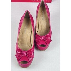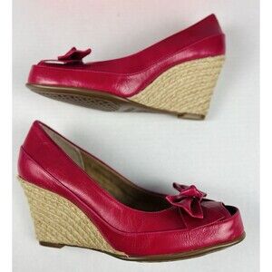 Aerosoles Well Wisher Shoes Womens 8.5M Pink Bowtie Peep Toe Espadrille Wedges