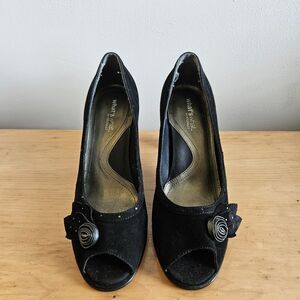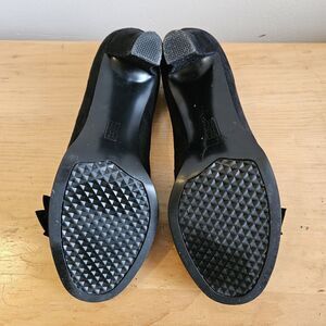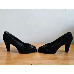 Elevate your shoe game with these sleek black suede Aerosoles What's What heels. These pumps are perfect for any occasion, from a night out on the town to a day at the office. The 7.5 size provides a comfortable fit, while the suede material adds a touch of sophistication. The heel design is classy yet trendy, making it a versatile addition to any shoe collection. Don't miss out on the chance to own these stylish heels!