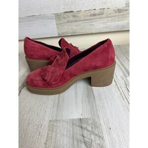 Aerosoles Women’s 6.5 Red Suede Tassel Slip-On Gibes Block Heel Loafers shoe New