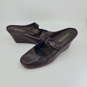 Aerosoles Women's Brown Wedge Slide Leather Shoes Size 8
