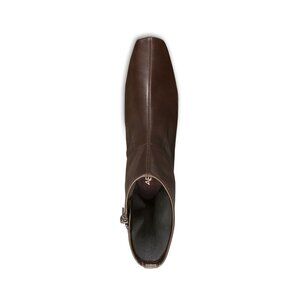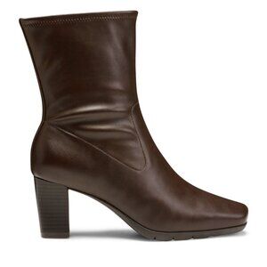 The Aerosoles Women's Cinnamon Heeled Tailored Booties - Brown is an ankle boot known for its comfort features, including a flexible fit and cushioned insole. It is designed with a square toe and a stacked block heel, offering a polished style suitable for both casual and work settings.