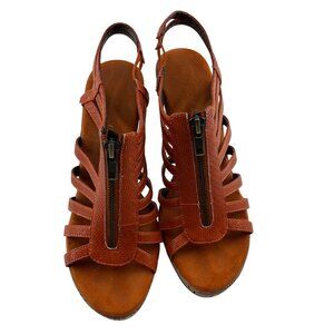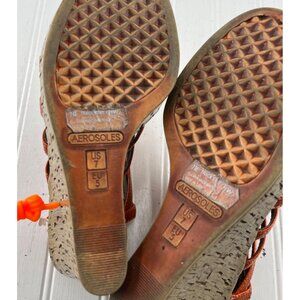 Aerosoles Womens Gladiator Wedge Sandals Size 7 US Orange Faux Leather With Zipp