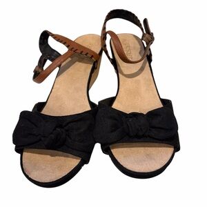 Aerosoles Womens Heel Rest Black Open Toed wedge heel Size 12 bow detail