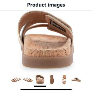 Features: Cushioned cork-style footbed, adjustable straps, slip-on design