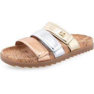 Slide into shimmer with these gorgeous Aerosoles “LEE” sandals — where comfort meets glam! The triple metallic leather straps (rose gold, silver, and champagne) are set against a cork-textured comfort footbed, giving “casual chic” a whole new meaning. With a cushioned sole and easy slip-on design, they’re perfect for warm-weather errands, patio brunches, or that spontaneous Target run you definitely meant to plan.